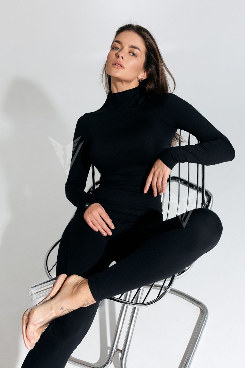 Висока горловина делікатно закриває шию, а приталений крій підкреслює лінію талії та грудей. Лонгслів можна носити як самостійний верх або як перший шар під жакети, пуховики, пальта чи спортивні куртки. Ідеально підходить для повсякденних образів, прогулянок, поїздок і розслабленого casual у місті.