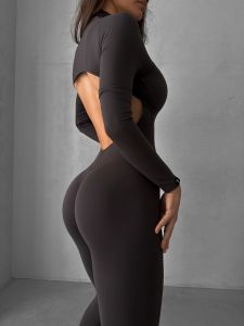 Жіночий комбінезон з довгим рукавом та легінсами | VV Brand створений для тих, хто любить сильний, графічний силует і акцент на спині. Спереду комбінезон виглядає лаконічно: чисті лінії, довгі рукави та облягаюча посадка. Уся увага зміщується назад — глибокий виріз відкриває спину, візуально витягує фігуру та підкреслює лінію талії.