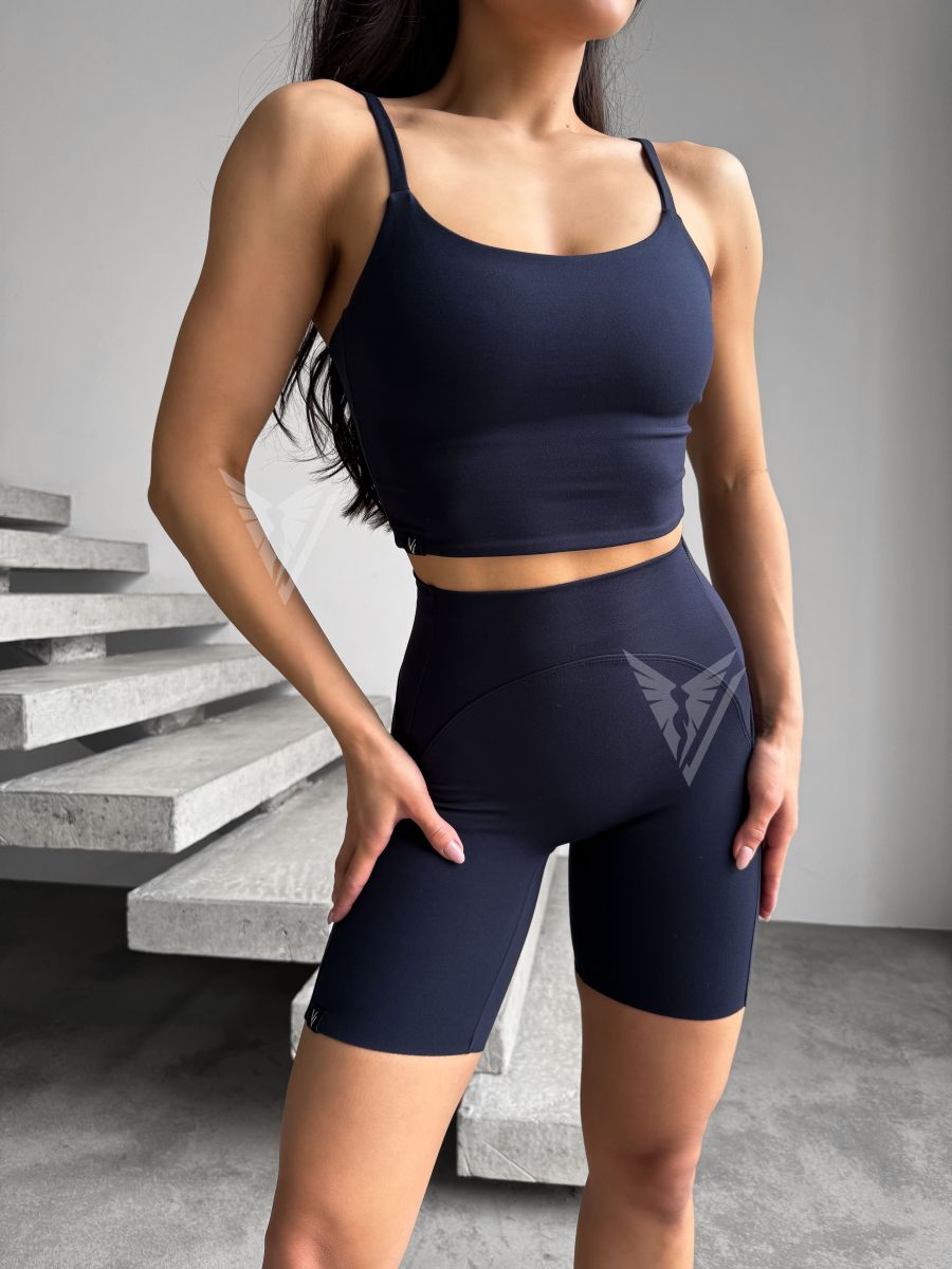 Тонкі бретелі додають образу легкості та дозволяють комбінувати топ з різною верхньою частиною: оверсайз-сорочками, піджаком, джинсовкою чи спортивною курткою. Укорочена довжина чудово поєднується з речами з високою посадкою — лосинами, шортами, джинсами та спідницями.