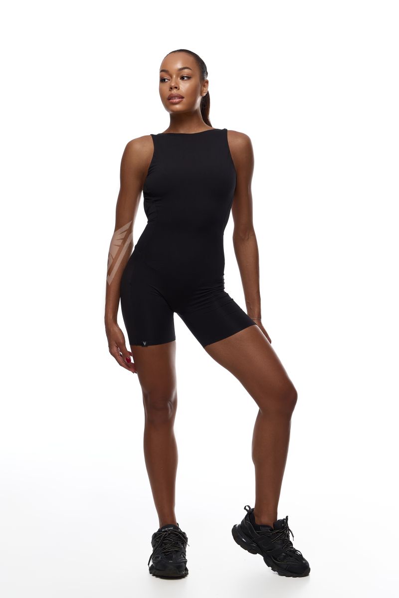 Модель: жіночий укорочений комбінезон з повністю відкритою спиною без рукавів